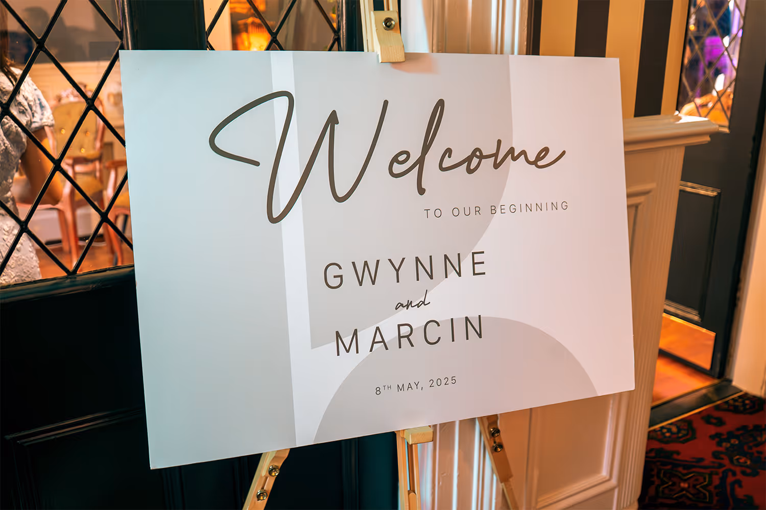 Professionally designed and printed with your names and date, styled and placed by our team so everything looks cohesive.