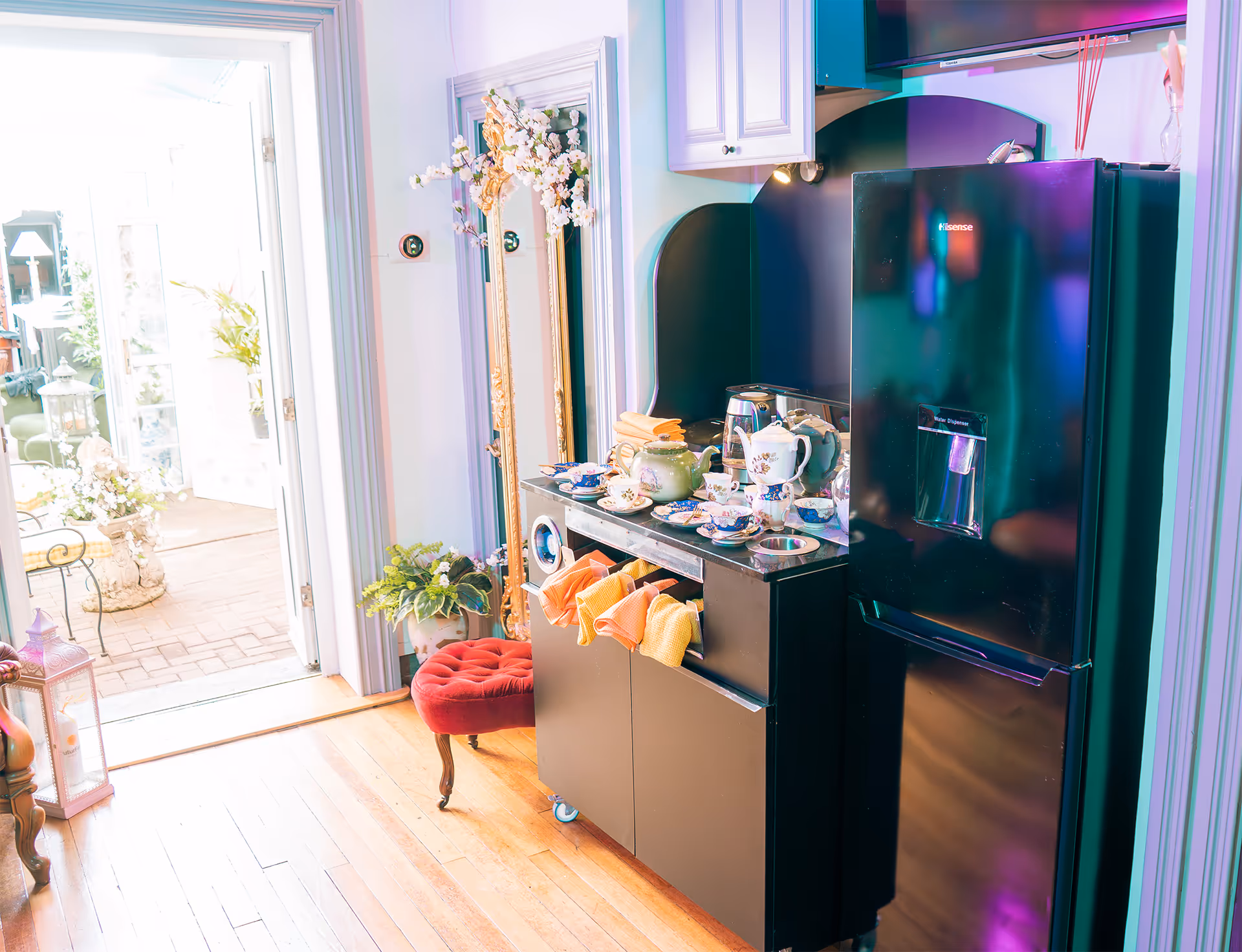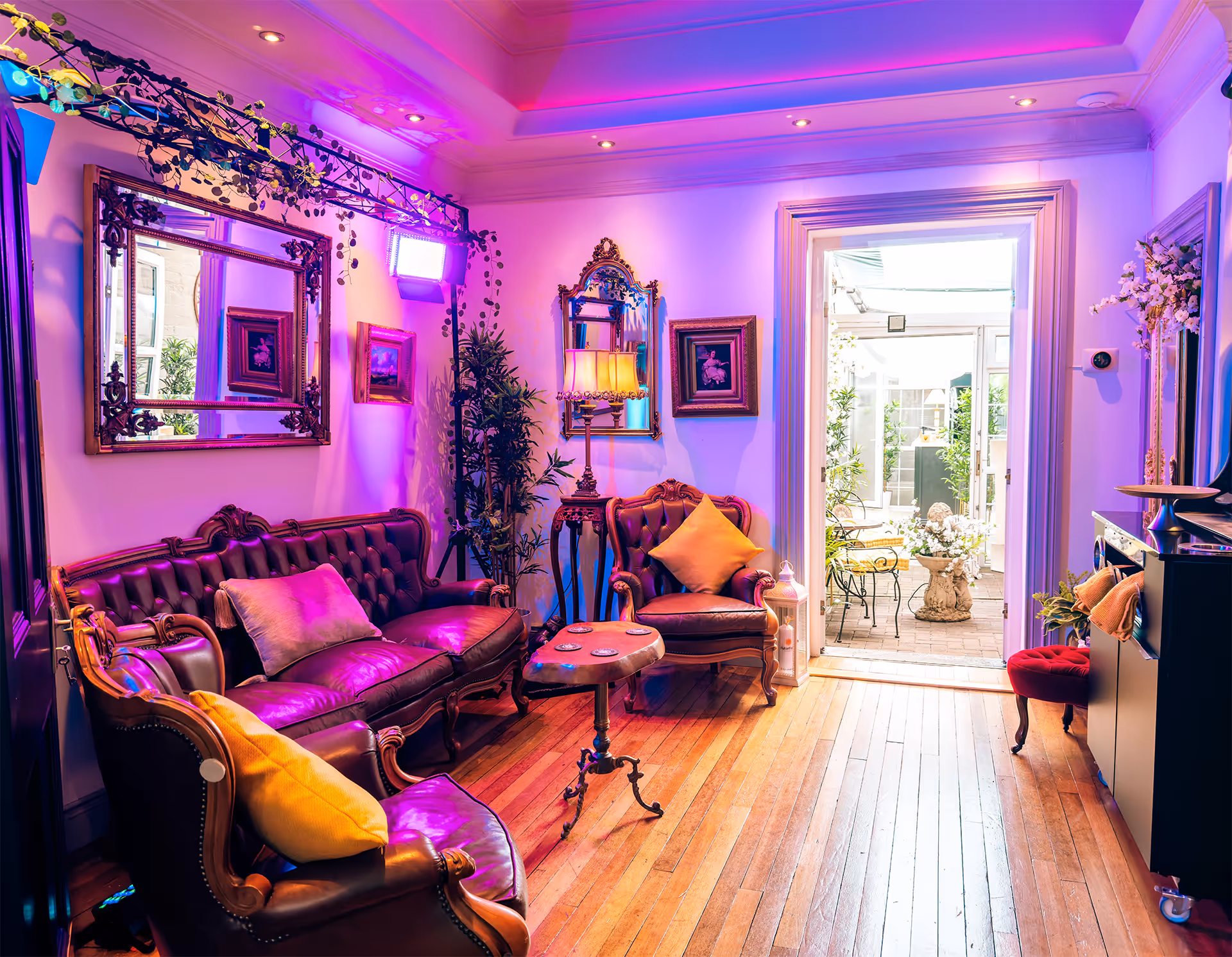The Vintage Tea Room is the social heart of Homestead House – a warm, character-filled space where guests can relax, chat, and enjoy complimentary refreshments. With its plush seating, period décor, and welcoming atmosphere, this is the perfect place to pause between moments, reconnect with loved ones, and soak in the occasion.